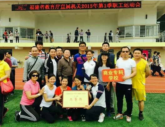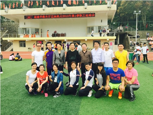 2015年4月18日由党委副书记、校工会主席黄跃舟带队参加在福建省邮电学校举行的省教育厅直属机关2015年第一季度职工运动会,在30米迎面接力跑、赶“猪”赛跑、1分钟定点投篮、飞镖等各项目竞赛中取得良好成绩,荣获集体二等奖。通过参赛推动全民健身运动的广泛开展,促进学校与厅直属机关各单位和各院校之间的体育交流学习。 省教育厅黄红武厅长等领导与bsport官网代表队合影