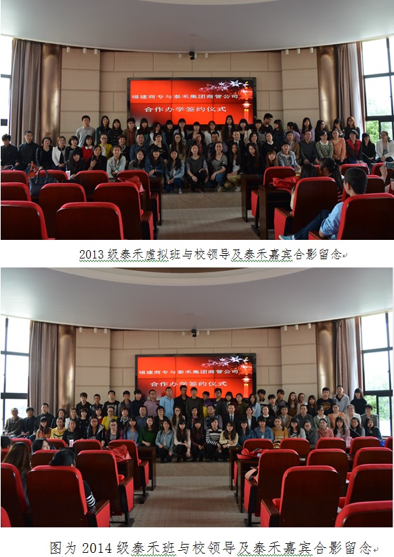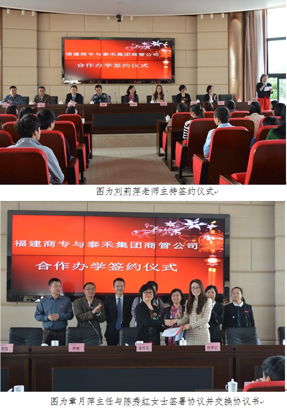 3月21日,bsport官网与泰禾集团商管公司校企合作订单培养的签约仪式在新区视频会议室隆重举行。出席本次仪式的嘉宾有:泰禾集团商管公司常务副总经理陈秀红女士等相关领导、bsport官网副校长吴贵明教授、校企实训处处长刘莉萍副教授、工商管理系主任章月萍教授以及企业管理专业教研室相关老师等。2013级泰禾虚拟班、2014级泰禾班全体同学见证了本次签约仪式。