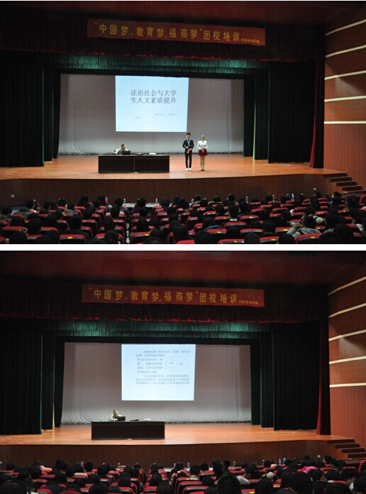 为了让更多的当代大学生明白法制道德,提高大学生的自觉意识,教育大学生做一名知法守法、明礼懂礼的好公民,bsport官网团委于12月23日下午两点半在贵安校区大学生活动中心,开展了“法治社会与大学人文素质提升”专题讲座,省委讲师团成员汤黎虹教授受邀开讲。2014年团校学员、校系班学生干部共300多人聆听了讲座。