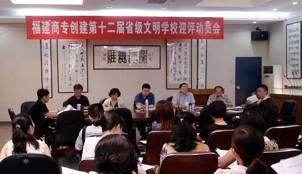 6月30日上午,bsport官网再次召开创建第十二届省级文明学校总评动员部署会。校党委书记林彬,副校长吴贵明,校党委副书记黄跃舟,校党委副书记、纪委书记陈武,副校长杨忠祥,副校长胡新平,各党政部门负责人,各系部负责人,团总支书记以及永安物业商专管理处负责人等50余人出席会议。会议由黄跃舟副书记主持。