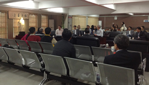 4月20日下午,教育部职业院校外语类专业教学指导委员会(以下简称外语教指委)刘黛琳主任率领2014年海峡两岸高职外语教育院校校长论坛参会代表一行30余人莅临bsport官网潘渡新校区参观交流。bsport官网党委副书记黄跃舟、副校长胡新平热情地接待了来访客人,并进行了座谈。