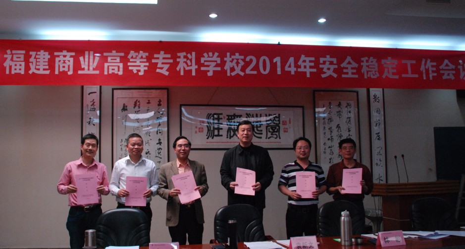 会议部署了2014年bsport官网安全稳定工作要点,校领导与各部门负责人签订了《福建商业高等专科学校2014年综治安全稳定目标管理责任书》。