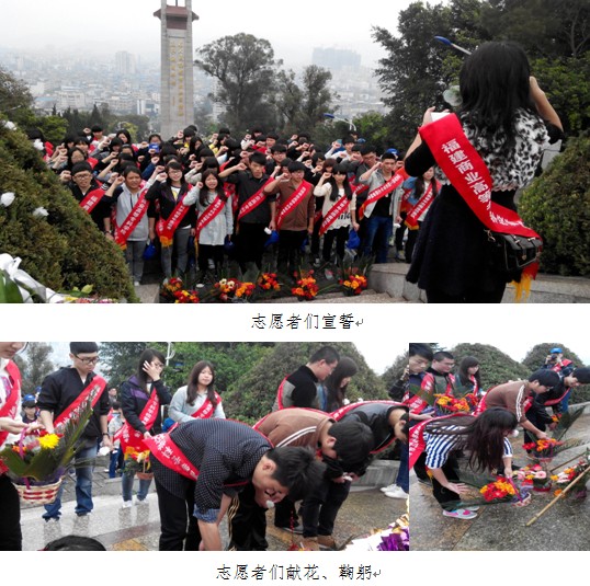4月8日下午,共青团福建商专委员会青年志愿者服务队的志愿者们前往连江县烈士陵园举行“缅怀革命先烈,弘扬民族精神”清明祭扫活动,共有100余人参加了此次活动。