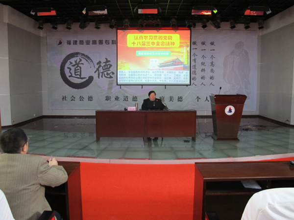 黄跃舟副书记在总结讲话中指出,郑又贤教授的宣讲报告主线清晰,论述深刻,内容丰富,提纲挈领、重点突出,深入浅出,对于广大师生准确理解和把握党的十八届三中全会精神,具有很强的指导性、针对性和启发性。今后福建商专还将结合学习习近平总书记重要讲话精神,利用报告会、“两课”教育、党团日活动、中心组学习、网上专栏、理论研讨等多种形式,持续推进党的十八届三中全会精神的学习宣传工作,同时用十八届三中全会的精神指导实践,进一步解放思想,认真扎实做好将于近期召开的党大会筹备工作,集中全体师生员工的群体智慧,准确定位百年商专的战略目标,进一步推进学校的科学发展、跨越发展。