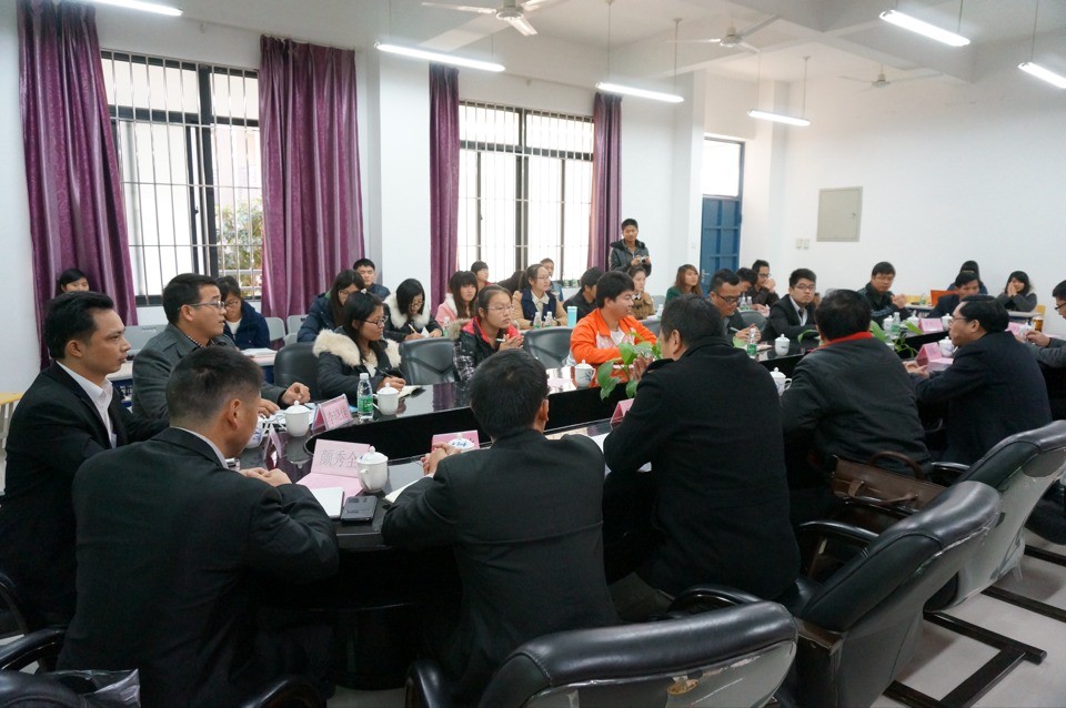 12月19日下午,bsport官网在潘渡校区召开学生食堂工作座谈会。校长袁新文教授和副校长杨忠祥副教授出席了会议,监察审计处、后勤保卫处、中团餐饮管理有限公司、永安物业公司相关人员及学生代表参加了会议。