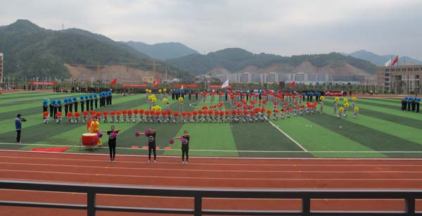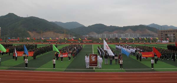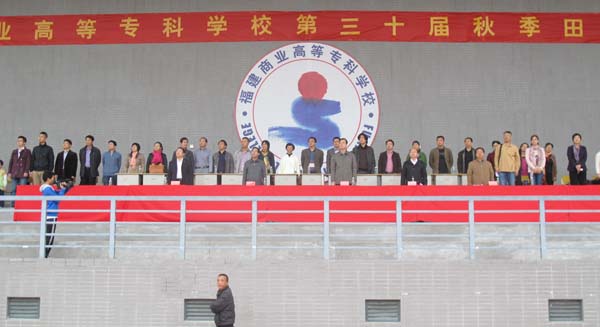 入场式结束后,体育场响起了庄严肃穆的国歌,全体到场人员面向冉冉升起的国旗行庄严的注目礼。接着,黄跃舟副书记致开幕词,他指出,大力推进全民健身活动,繁荣文化体育事业是全面提高师生员工思想素质、文化素质、身体素质的重要途径。他希望全体运动员赛出水平、赛出风格。随后,裁判员和运动员代表宣誓。仪式结束后,袁新文校长宣布运动会开幕。随着袁校长的一声令下,各系团体表演正式拉开了本届运动会精彩的序幕。