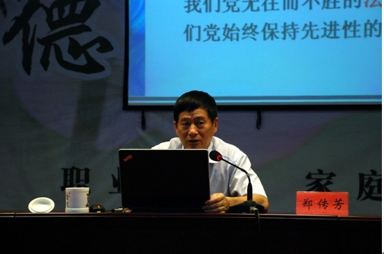 会上,郑传芳教授做了题为《始终保持党同人民群众的血肉联系》的专题报告。郑教授从正确把握我党群关系的构成与实质、深入分析党群关系产生问题原因、自觉遵循党群关系的客观规律等三个方面,深入浅出地为我们剖析了保持党和人民群众血肉联系的重要性。结合当前在全党深入开展以为民务实清廉为主要内容的党的群众路线教育实践活动,对如何教育引导党员、干部牢固树立宗旨意识和马克思主义群众观点,如何贯彻党的群众路线,切实改进工作作风,如何赢得人民群众的信任和拥护,保持党同人民群众的血肉联系提出了独到的见解,对我们下一阶段深入开展教育实践活动很有启发和帮助,也深受教育。