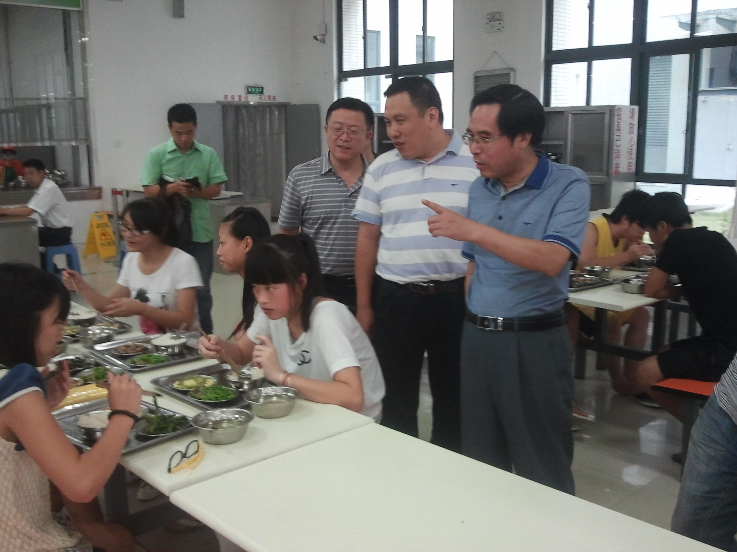 随后,学校领导实地检查了学生公寓二号楼及食堂。在检查二号楼时,校领导了解到有新生提前报到,校长等几位领导即刻到学生宿舍与学生及家长拉家常,了解报到情况。在检查食堂过程中,校领导向餐厅员工询问了食品准备情况,并向就餐学生了解餐饮价格及质量等问题。