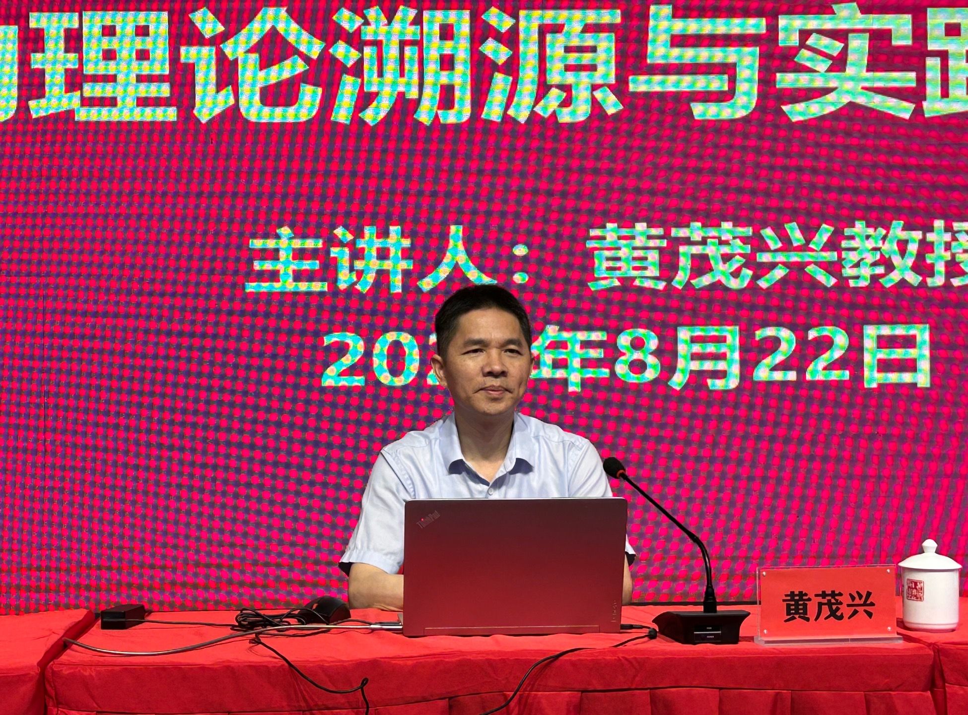福建社会科学院党组成员、副院长,福建省习近平新时代中国特色社会主义思想研究中心副秘书长黄茂兴教授作《习近平经济思想在福建的理论溯源与实践探索》专题讲座。他全面梳理了习近平经济思想在福建形成与发展的时代背景、生动实践,充分阐明其理论贡献,深入解读这些实践探索和理论思考对新征程上全面建设社会主义现代化强国的重要启示。