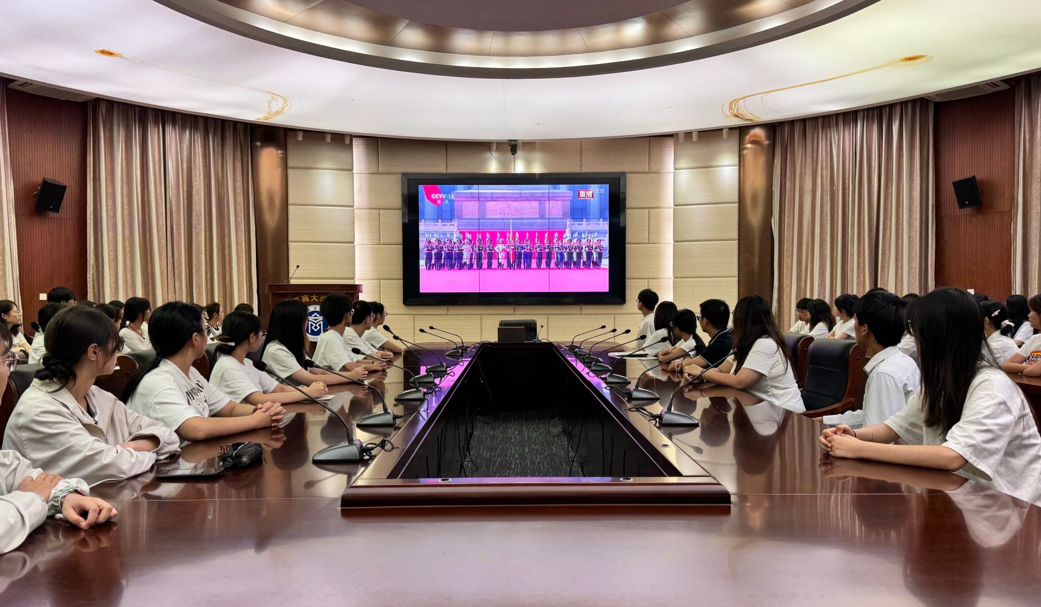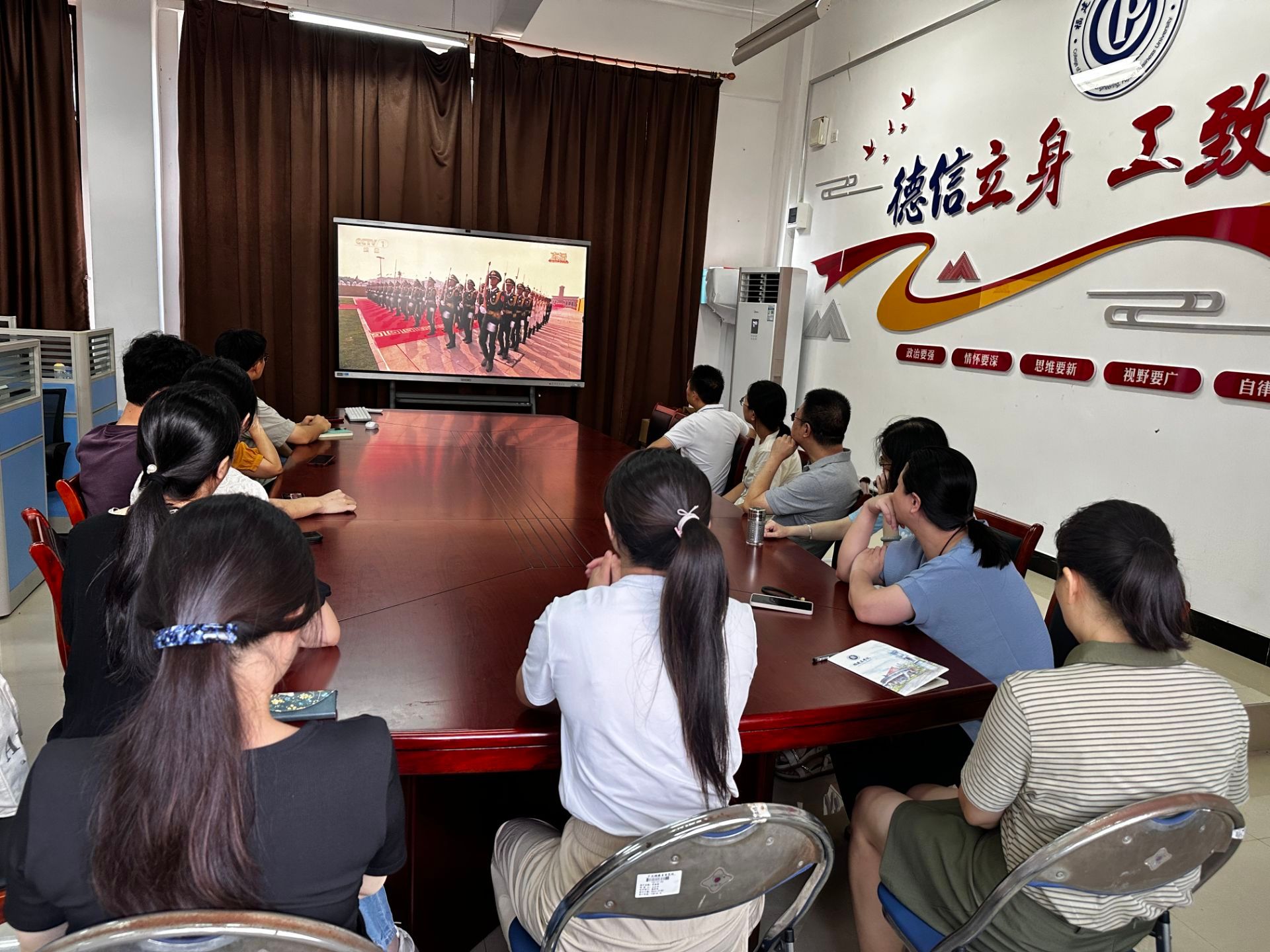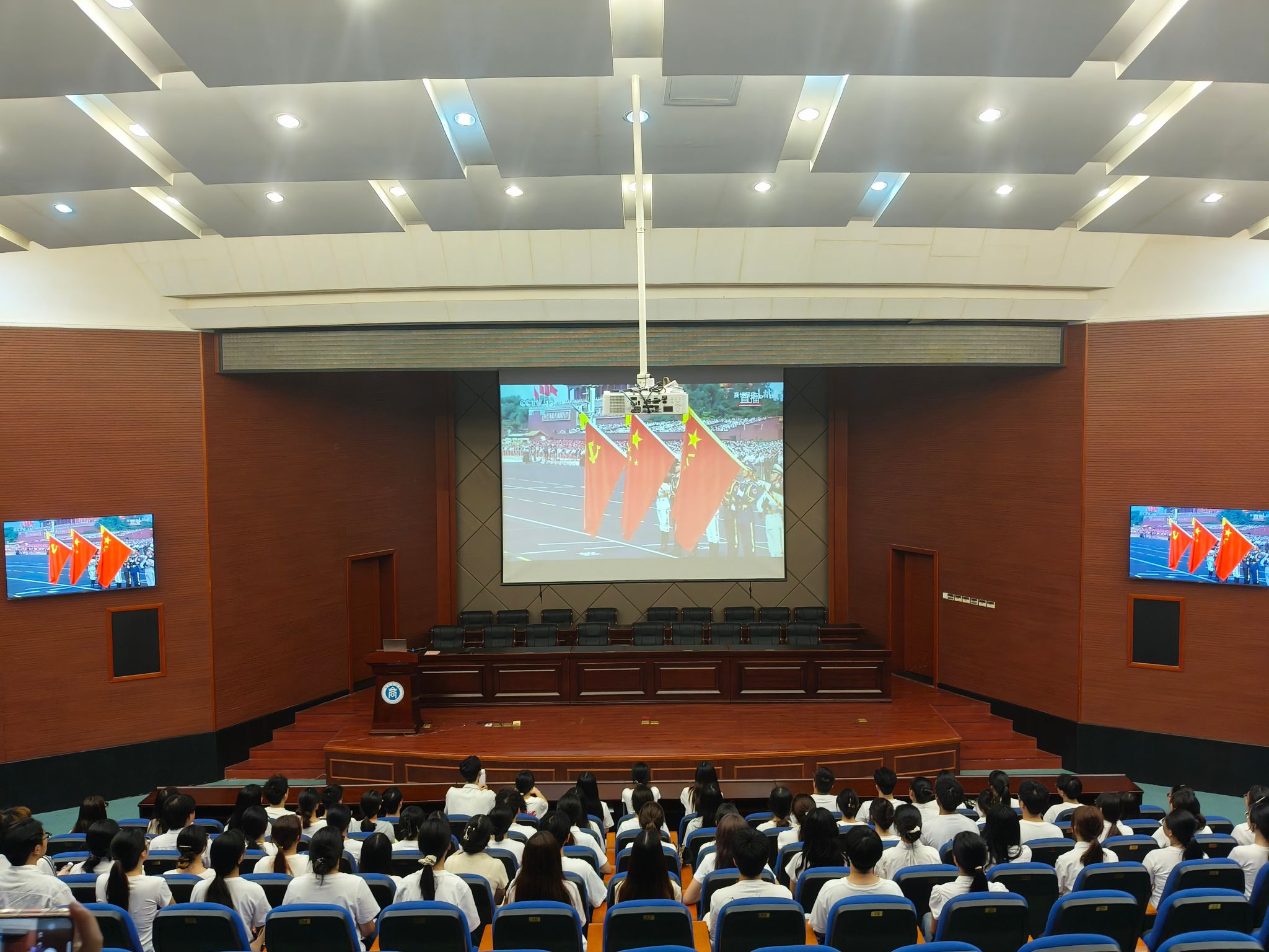 9月3日上午,纪念中国人民抗日战争暨世界反法西斯战争胜利80周年大会在北京天安门广场隆重举行。中共中央总书记、国家主席、中央军委主席习近平发表重要讲话并检阅部队。校领导吴访益、程灵、徐晓丹、蒲文庆、萧罡、林文艺,机关党员干部代表在青年大讲堂集中观看直播,各二级学院组织党员干部师生通过集中收看、自行收看等形式观看大会直播。师生认真聆听学习习近平总书记的重要讲话,观看阅兵仪式,备受鼓舞、倍感自豪、倍增信心。